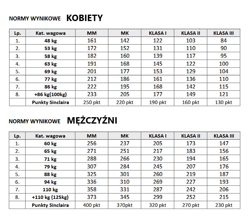 W podziale na grupy brany będzie podany wynik w zgłoszeniu. Należy pamiętać, że minimalny ciężar od jakiego należy rozpocząć występ na pomoście głównym to, maksymalnie 20 kg mniej od zgłaszanego wyniku.